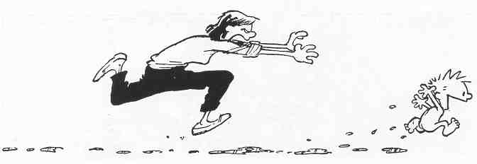 Hobbes est souvent traité par Calvin de drôles de surnom car quand ils font des batailles d'eau celui qui est le plus mouillé est souvent Calvin ou quand ils se battent c'est aussi Calvin qui sort tout plein d'égratignures : Hobbes c'est aussi psychopathes à rayures ou tête de thon ou encore boule de poile.... | ![]() |