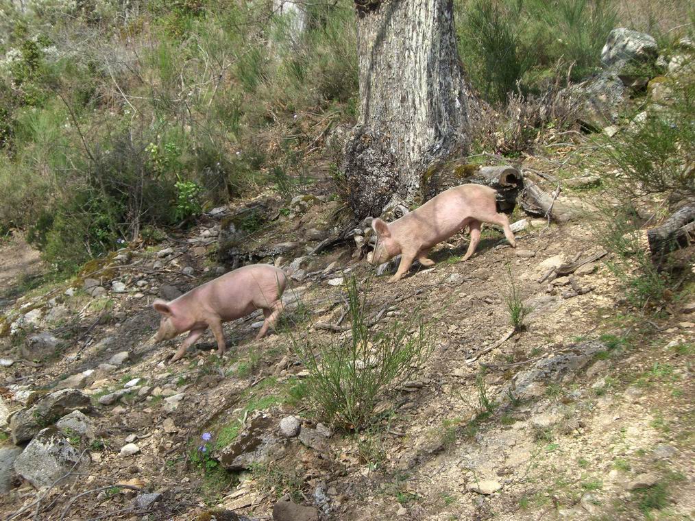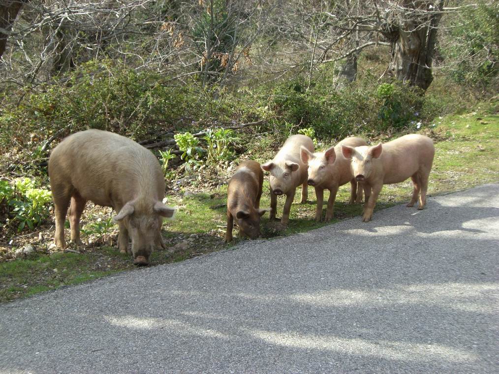 Famille de cochons en liberté
